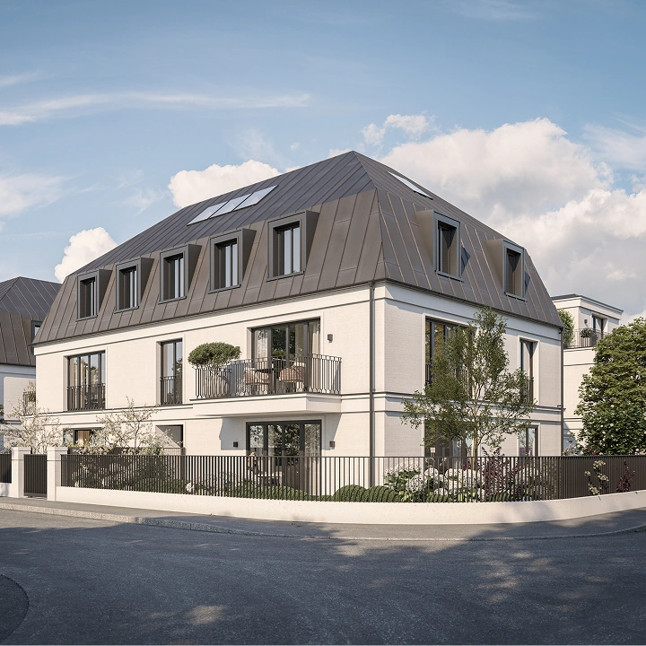 Zum Ensemble gehören zwei elegante Mehrfamilienhäuser sowie zwei Doppelhaushälften konzipiert für Menschen mit einem hohen Anspruch an Wohnqualität und Umfeld. Unterschiedliche Wohnformen verbinden sich hier zu einem stimmigen Gesamtbild, das urbanes Leben und private Geborgenheit in ausgewogener Weise zusammenführt. So entsteht ein Wohnkonzept für alle, die die Nähe zur Stadt ebenso schätzen wie den Rückzug ins Grüne.